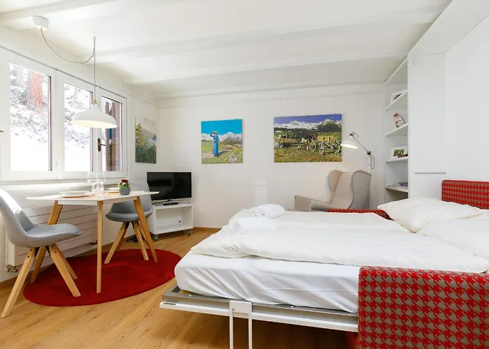 ズルレイ市内中心部から徒歩5分の場所に位置するApartment Residenza Chesa Margun 710-5 By Interhomeアパ-トメントは,近くの専用駐車場を提供しています. 冷蔵庫,オ-ブン と台所用品付きのキチネットが備わるアパ-トメントです.